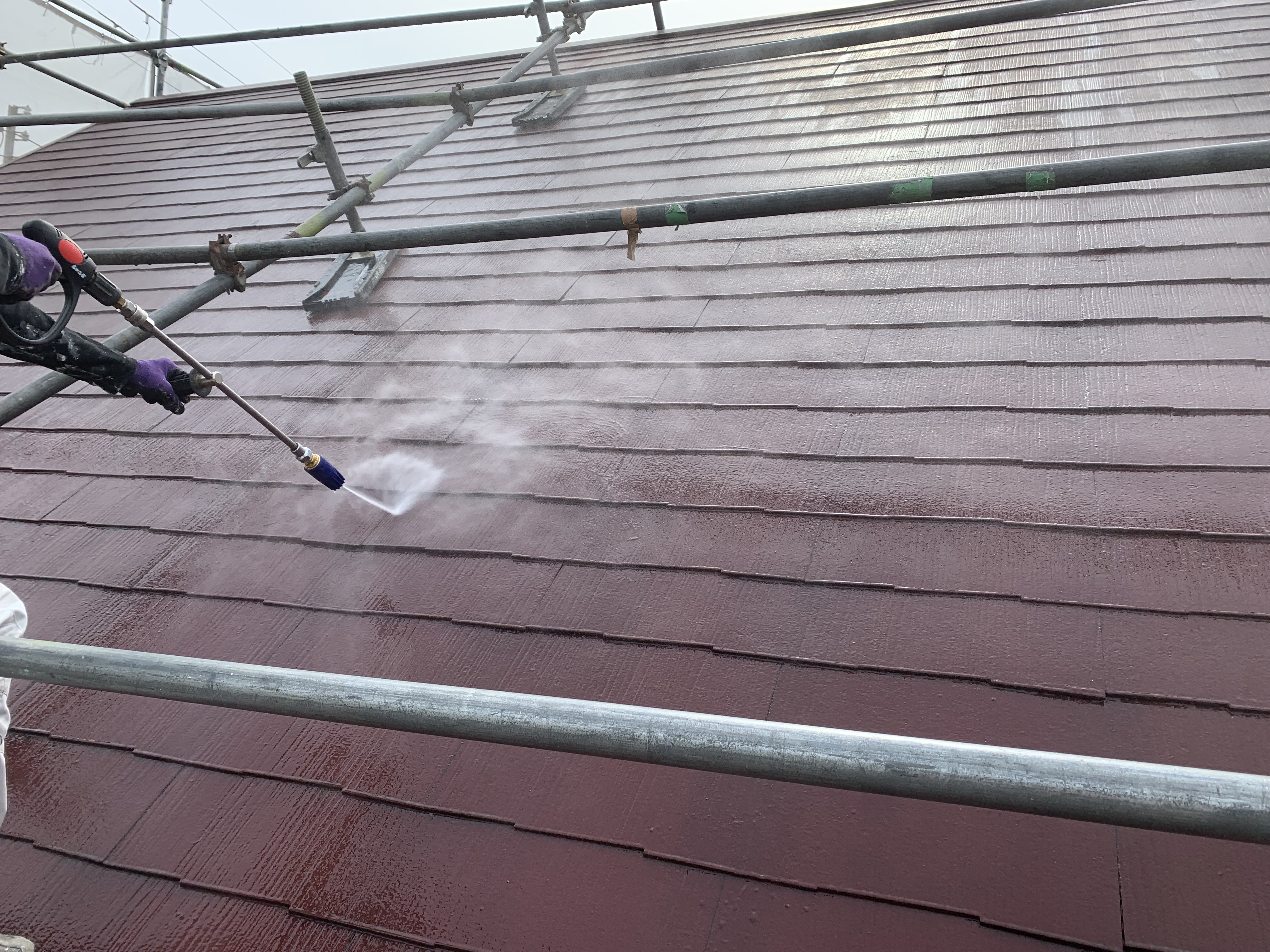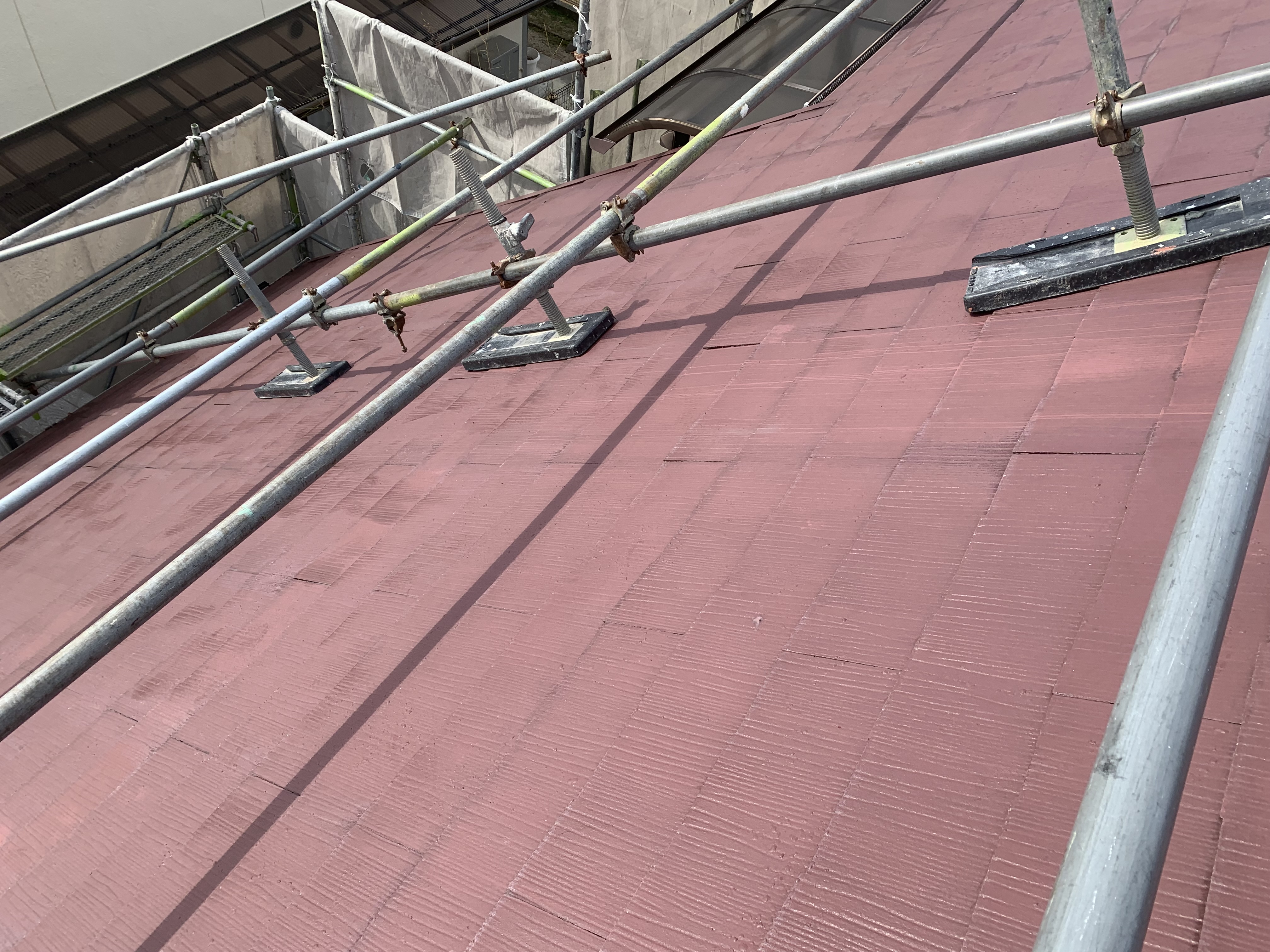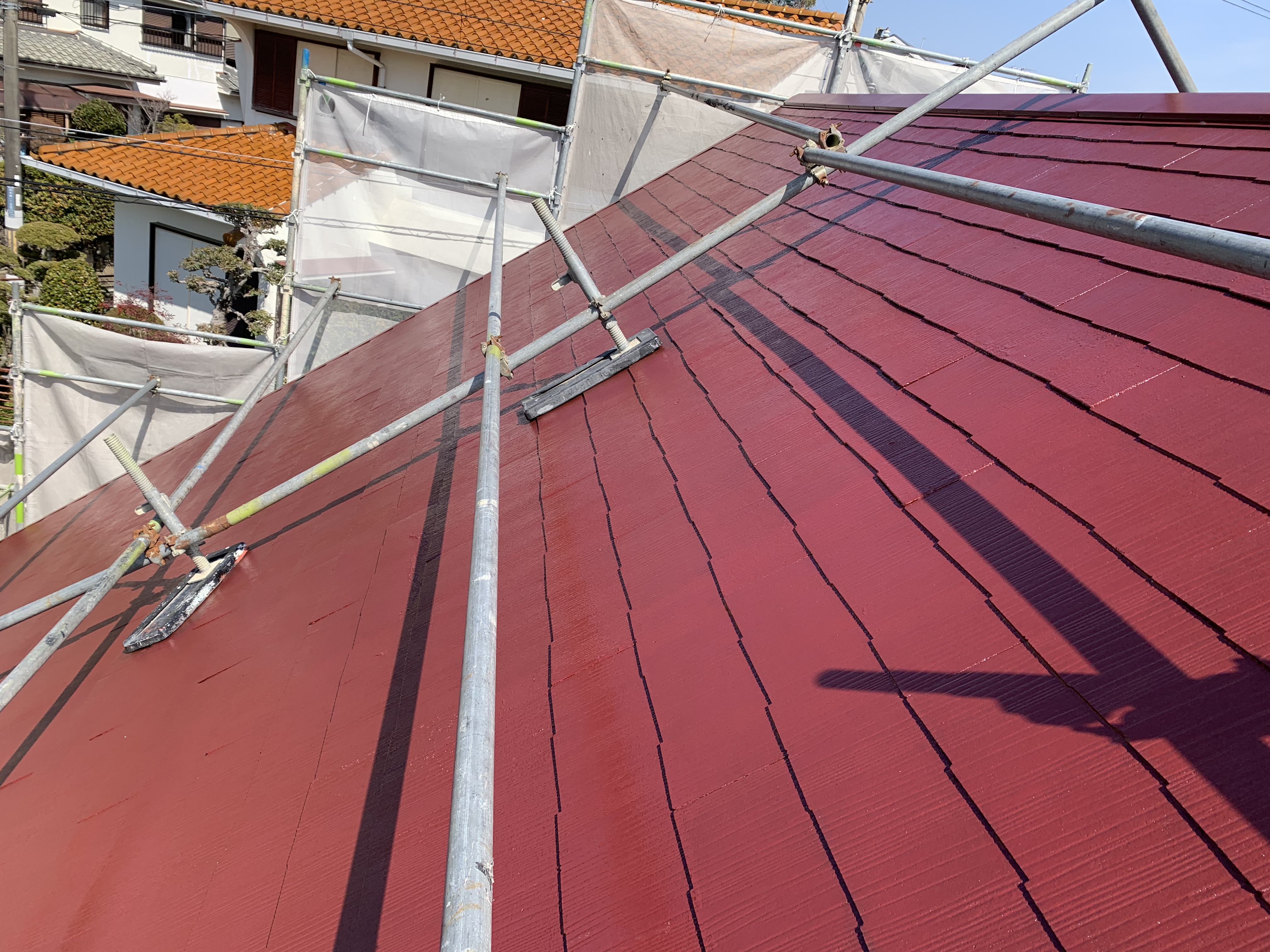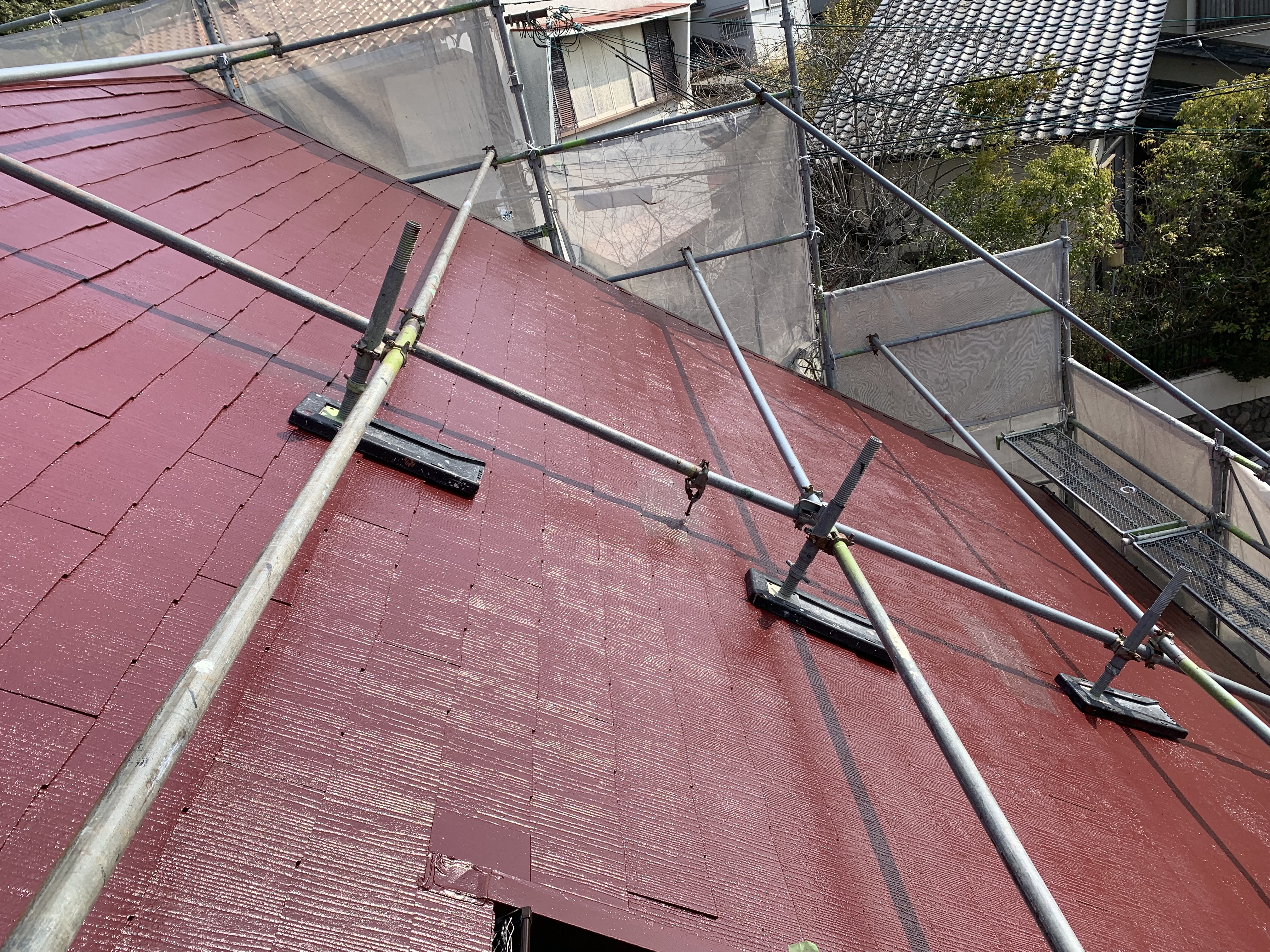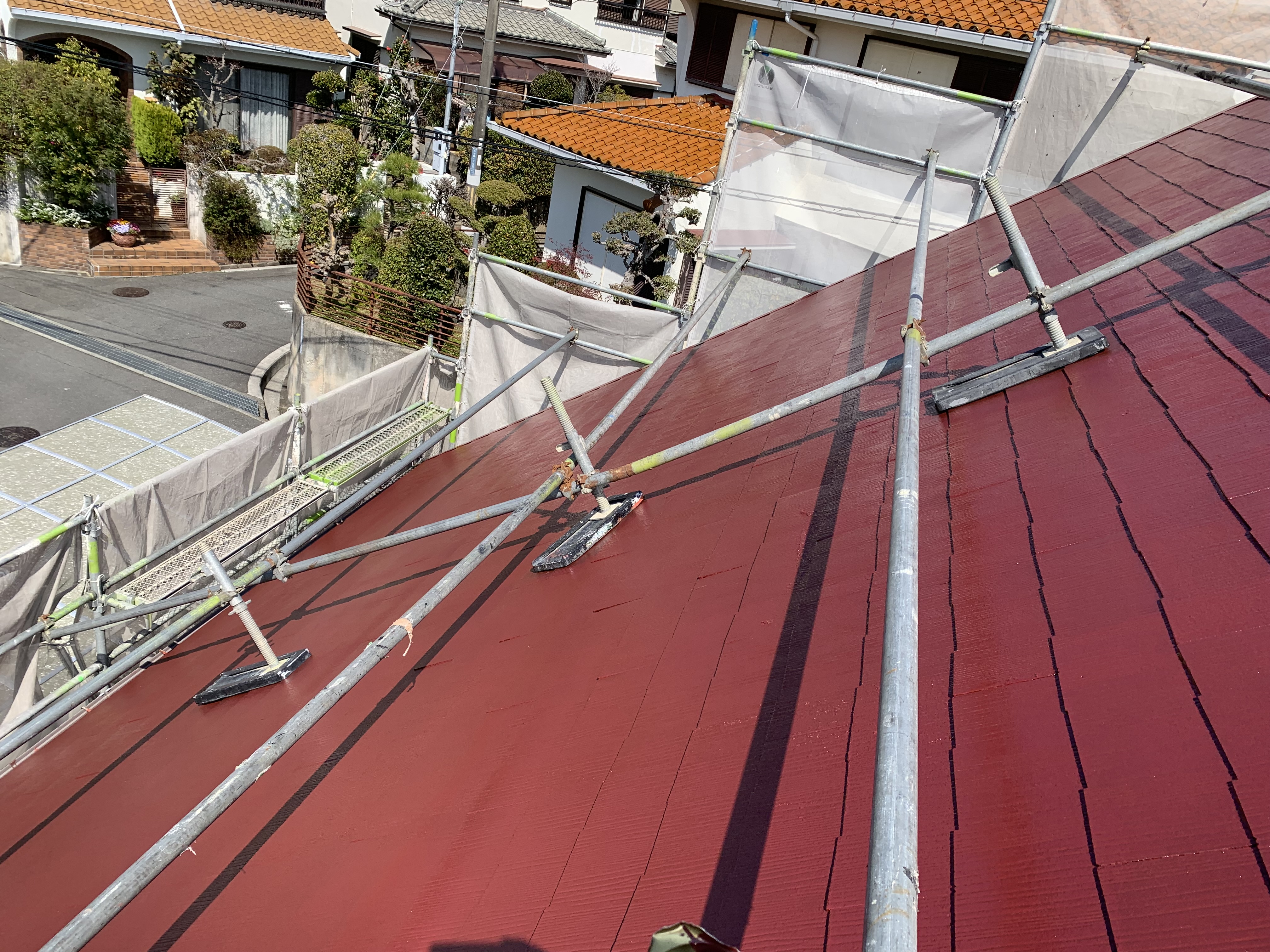屋根6寸勾配の為 屋根足場を仮設しました。